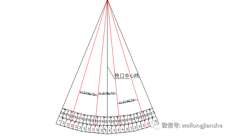 d)因?yàn)槁菟ㄐ枰怪睜t殼,水管需要垂直炫長(zhǎng),所以螺栓開(kāi)孔需要用水冷壁的水平圓半徑計(jì)算出弧長(zhǎng)對(duì)應(yīng)的圓心角,水管則是用爐殼的水平圓半徑計(jì)算出弧長(zhǎng)對(duì)應(yīng)的圓心角。